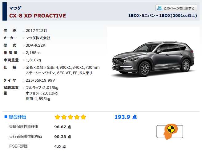 マツダは、CX-8が、JNCAPファイブスター賞を最高得点で受賞と発表しています。これで、すべての新世代商品がファイブスター賞を受賞しました。