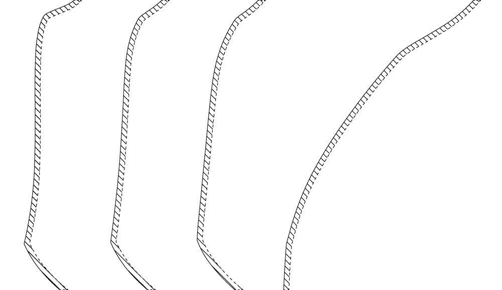 断面形状を説明図に加えている点が興味深いです。この独特なうねり、ひねり、曲面が、光と影の移ろいをしっかりと表現する肝ですかね。