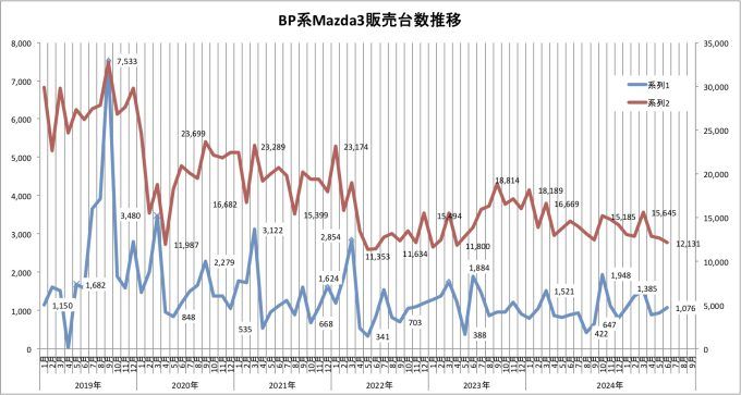 BP系Mazda3のグローバル販売台数の定点観測(?)です。
